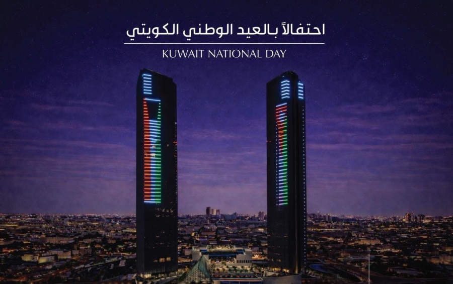 بوابة الأردن تضيء برج لوسنت السكني بعلمي الأردن والكويت احتفالًا بالعيد الوطني الكويتي