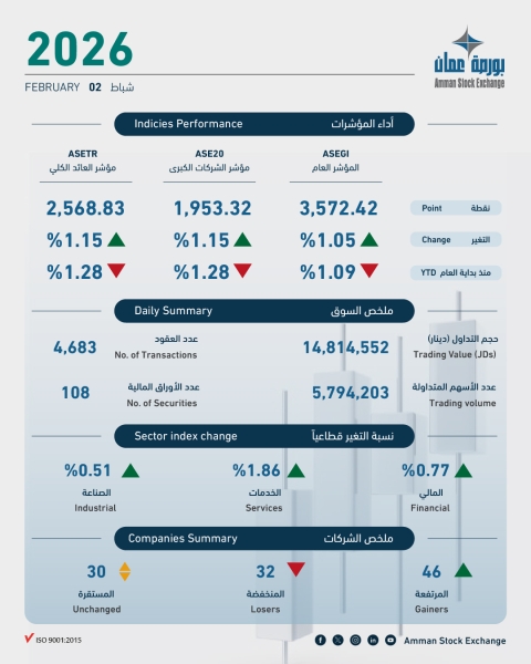 بورصة عمان تغلق تداولاتها على ارتفاع